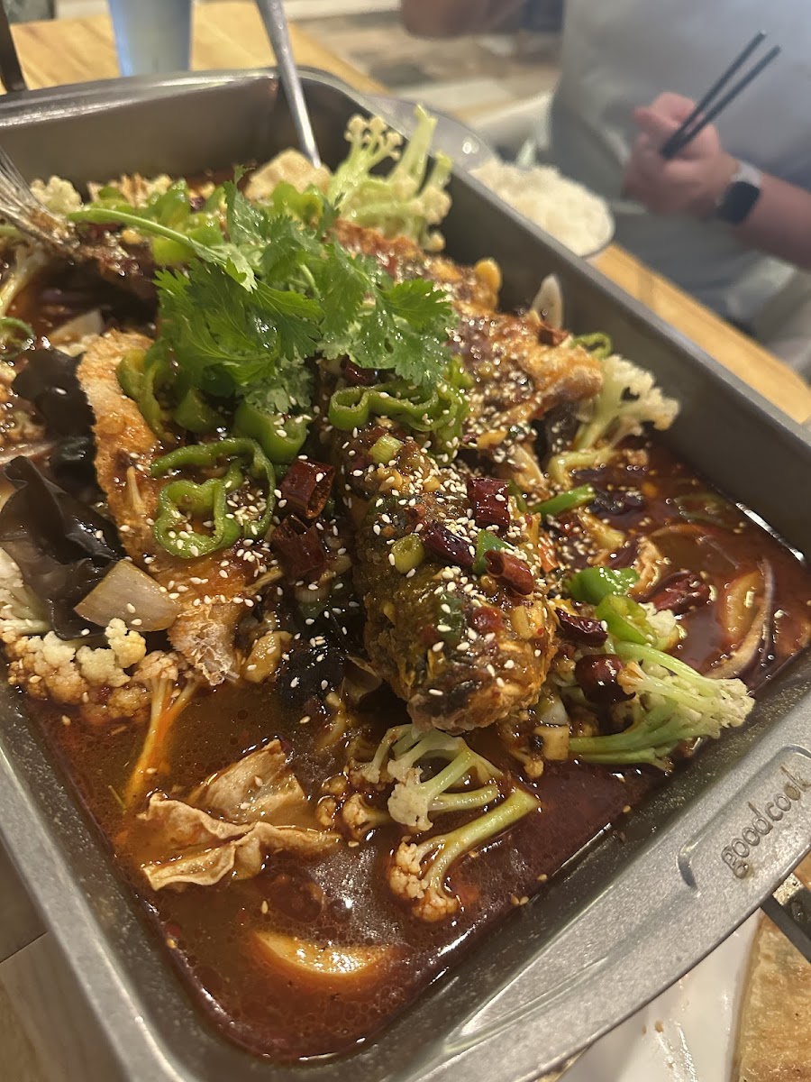 We ordered two fishes, one sour, one hot. Both were really good and came out super presentable. The sour one was a tad better imo because the fish was super soft. We had cucumber but it wasn't that flavorful. We also ordered white rice but couldn't finish it. The wait staff also came out with dessert soup with rice glutinous balls and they were soooo good. They came out with two bowls for four people which was a bit weird. Why would they assume that we can share the bowls? But I appreciate the gesture either way.